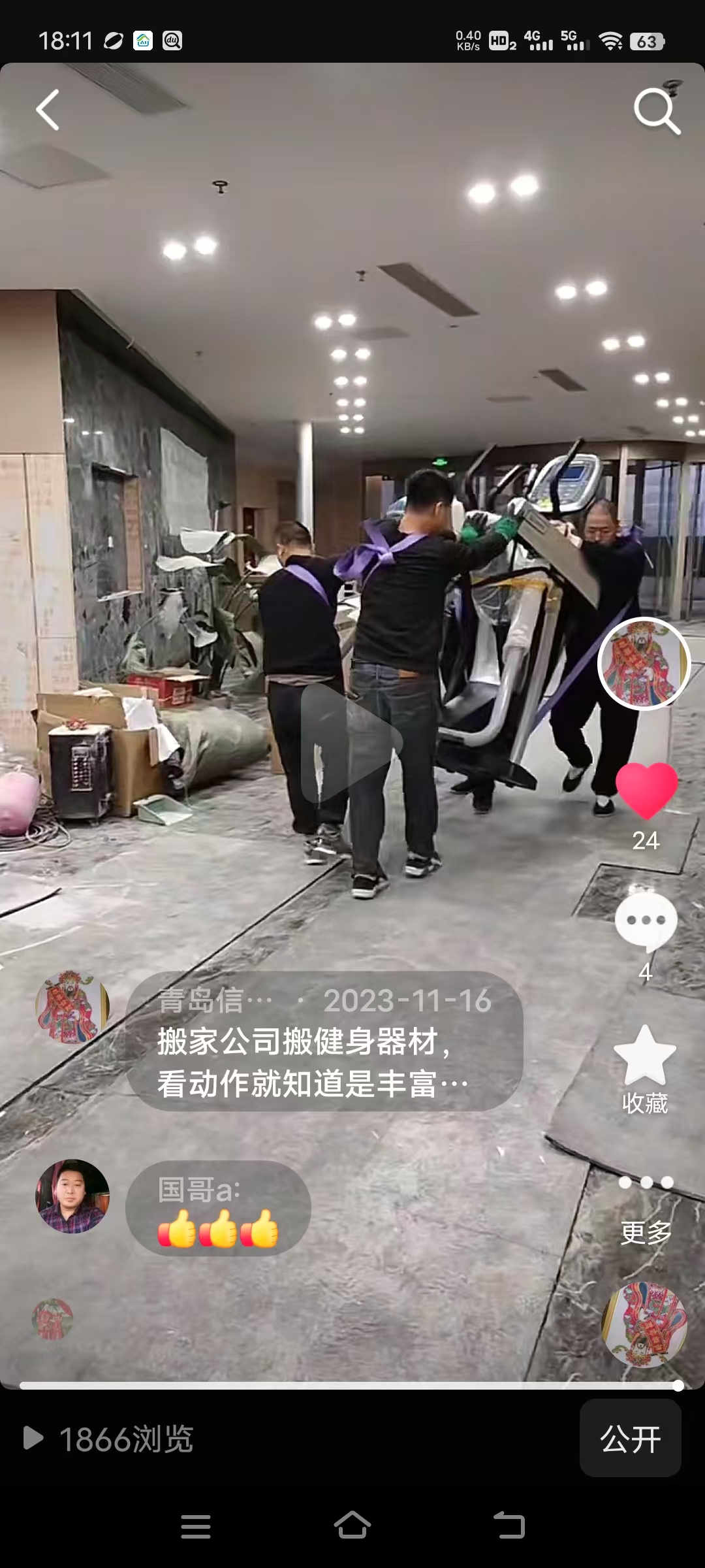 搬運過程中有些需要分體然后再組裝。有的個別的需要打包裝木箱搬運。我們特別注重搬運細節,方案。工作人員持證上崗操作規范。提供售后保障,讓你搬后無憂。感謝你對我們青島信義搬家公司的信任與支持,我們將以最優質的服務回報你的選擇,期待為你提供滿意的健身器材搬運服務。